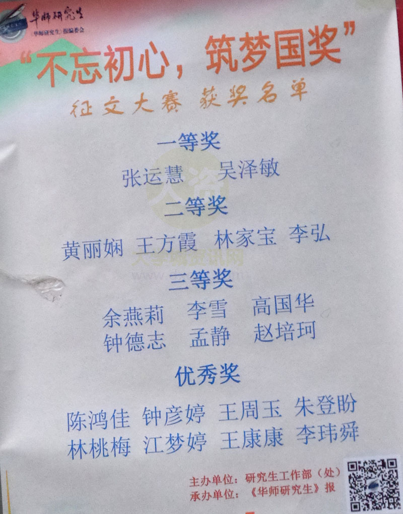 华师研究生"不忘初心,筑梦国奖"征文大赛获奖名单