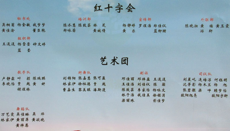 华师化院(红会艺术团)团委第一届第二任干事名单公示