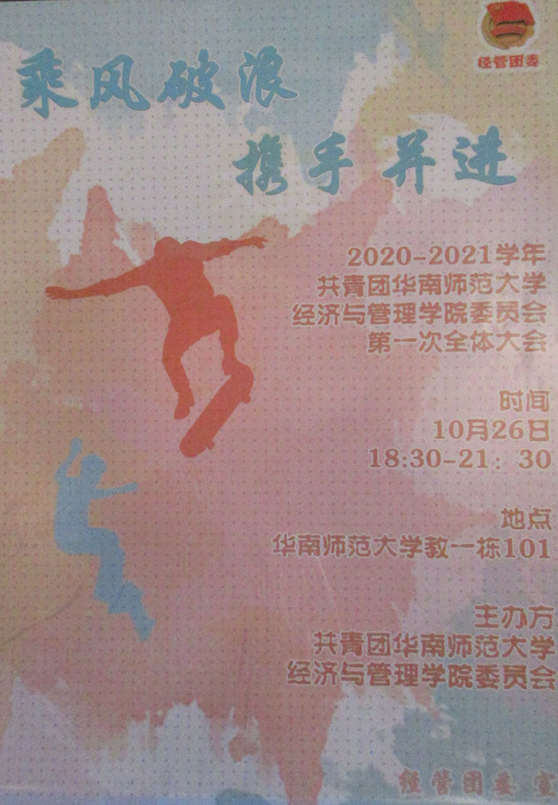 经管团委2020-2021学年第一次全体大会 10月26日18:30-21:30 教一栋101