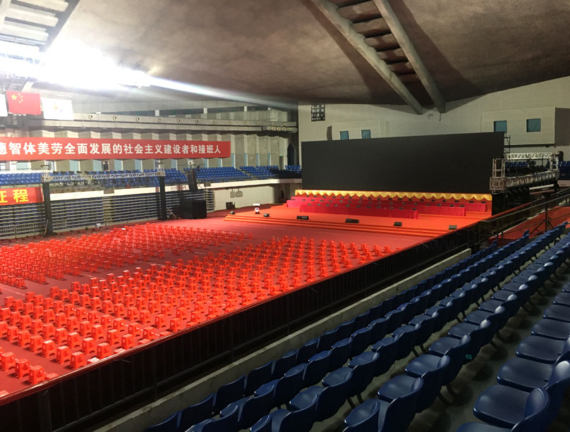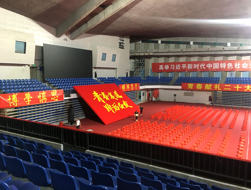 华工 也将进行毕业典礼和学位授予了 在体育馆 看布置 规格还挺高且隆重的