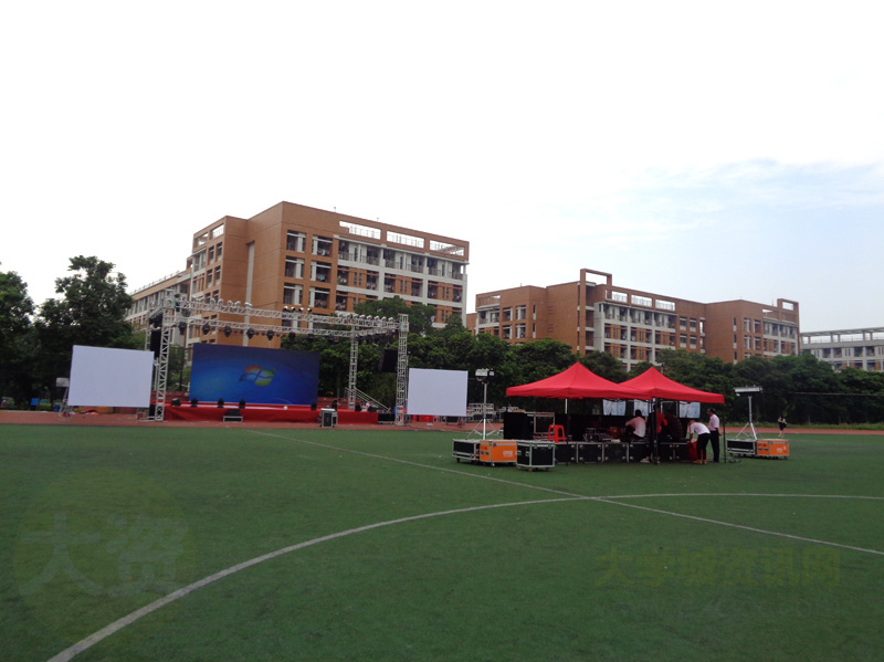 生活区足球场今晚将有什么活动 在搭舞台调试设备