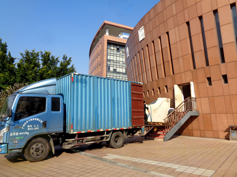 教学区音乐厅舞台后门外正在搬运进似乎是一架新的钢琴