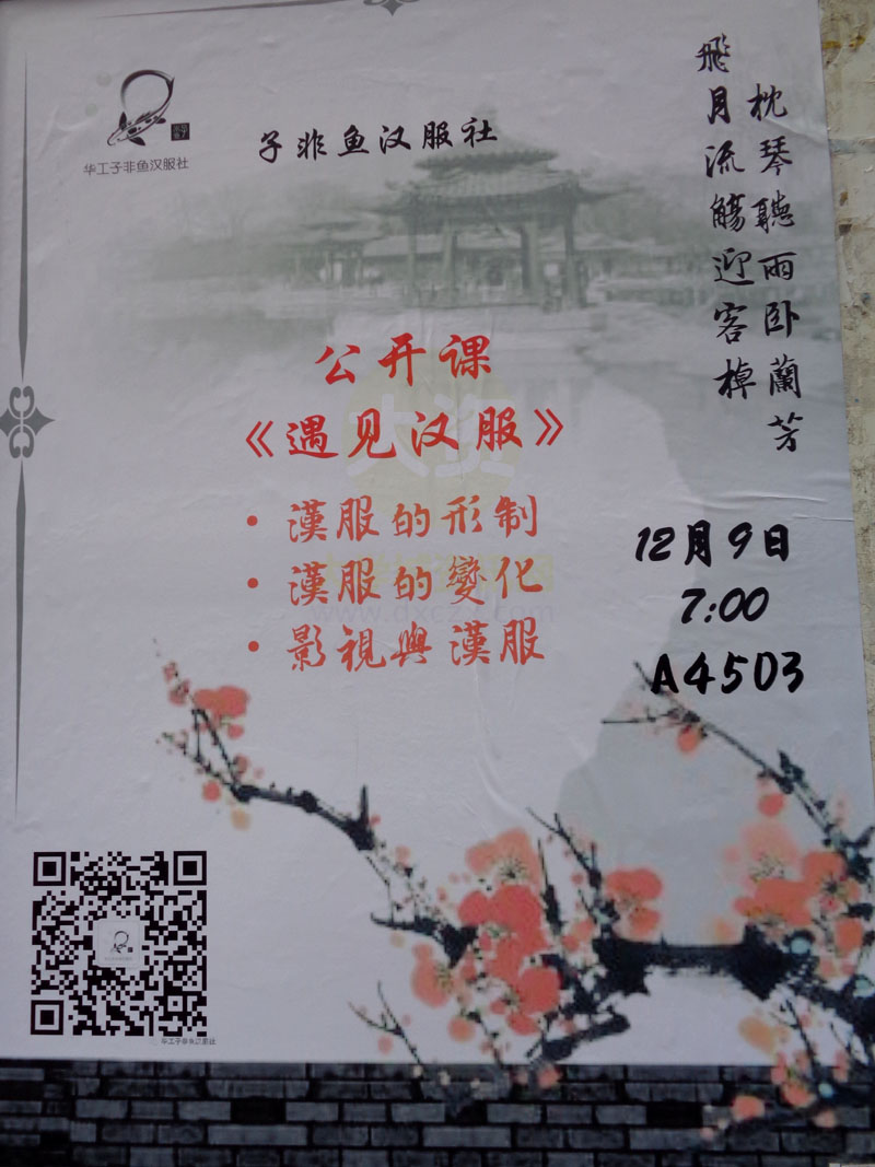 | 子非鱼汉服社公开课《遇见汉服》 12月9日晚7:00 A4-503 | ||||||