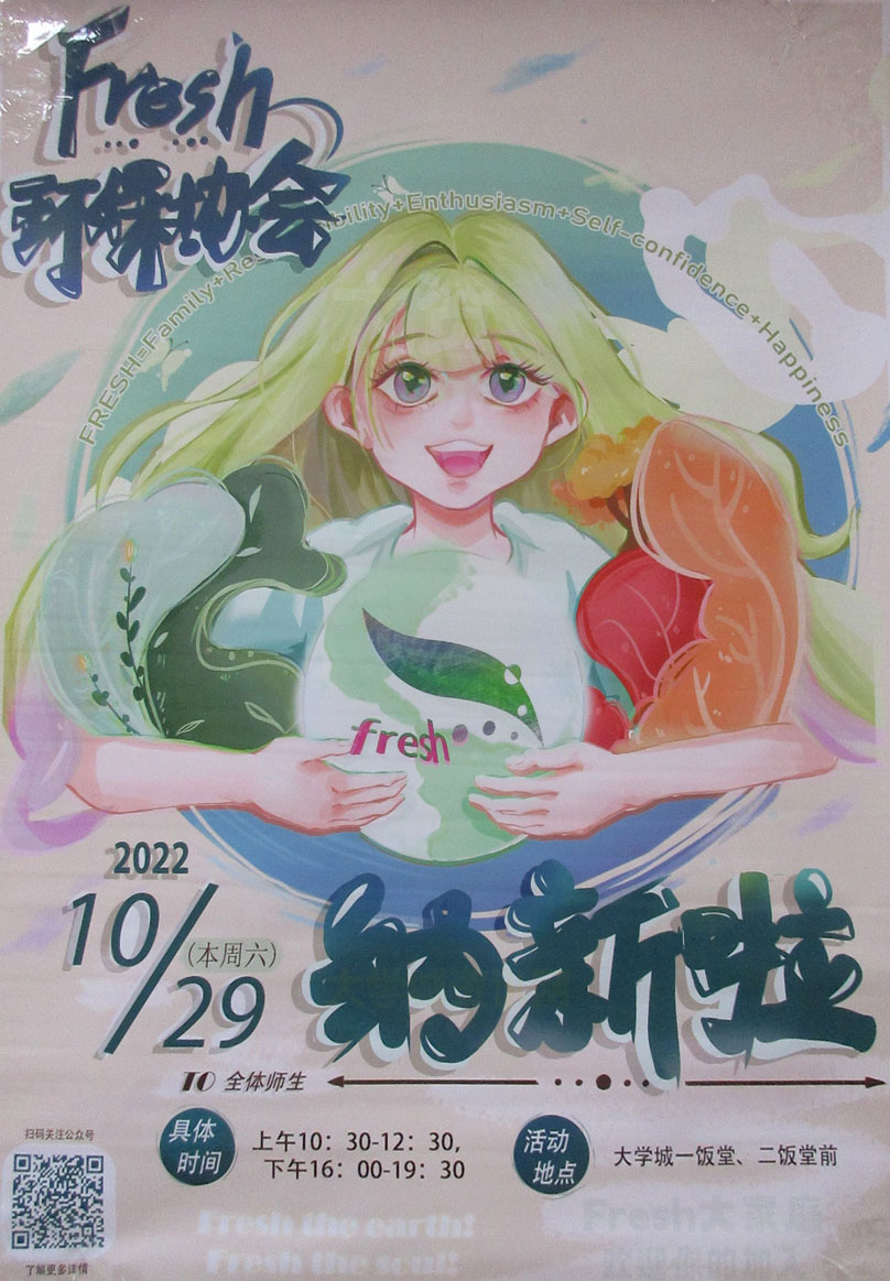 | 华工-Fresh环保协会纳新 2022.10.29本周六 上午10点30-12点30 下午16点-19点30 生活区一饭二饭前 | ||||||