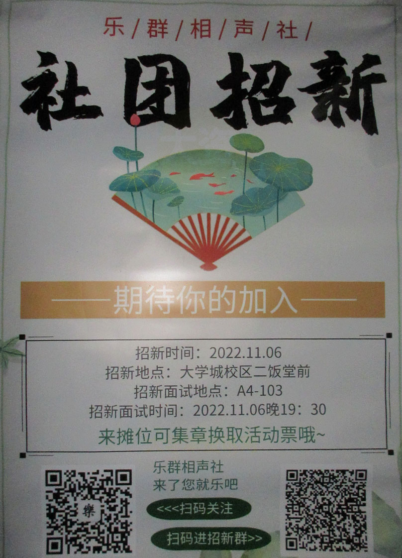 | 华工-乐群相声社2022招新 时间2022.11.06周日 生活区二饭前 面试时间11.06晚19点30 教A4-103 | ||||||
