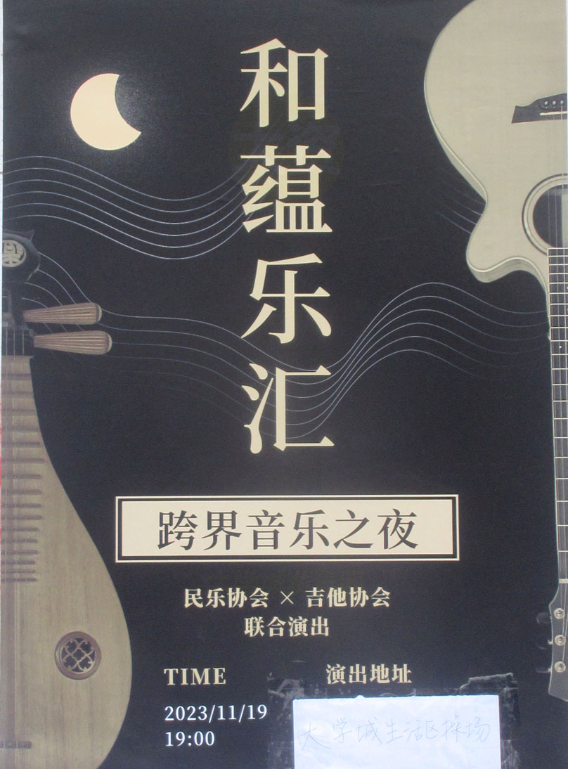 | 华工-民乐协会&吉他协会 跨界音乐演出 2023.11.19周日晚19点 生活区运动场 | ||||||