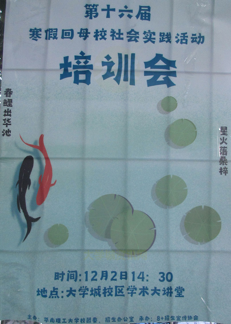 | 华工-第十六届寒假回母校社会实践活动培训会 12.02周六下午14点30 学术大讲堂 | ||||||