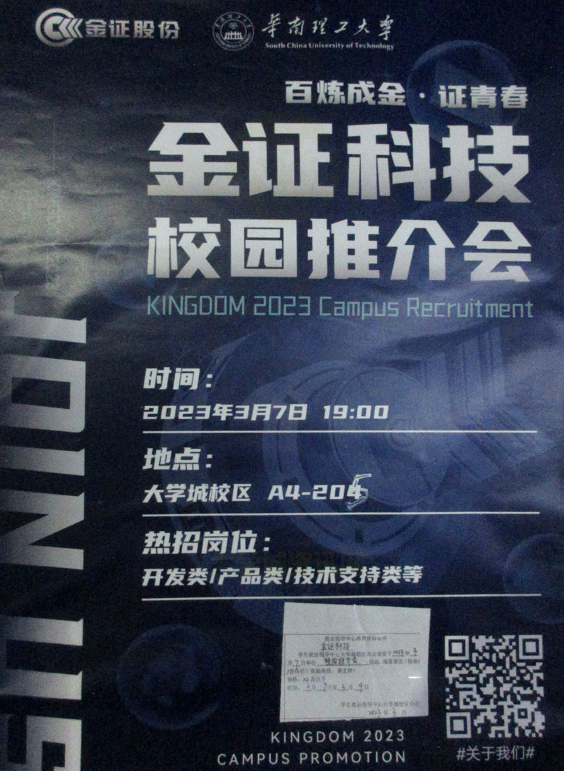 | 金证科技校园推介会 2023年3月7日晚19点 教学区A4-205 开发产品技术等 | ||||||