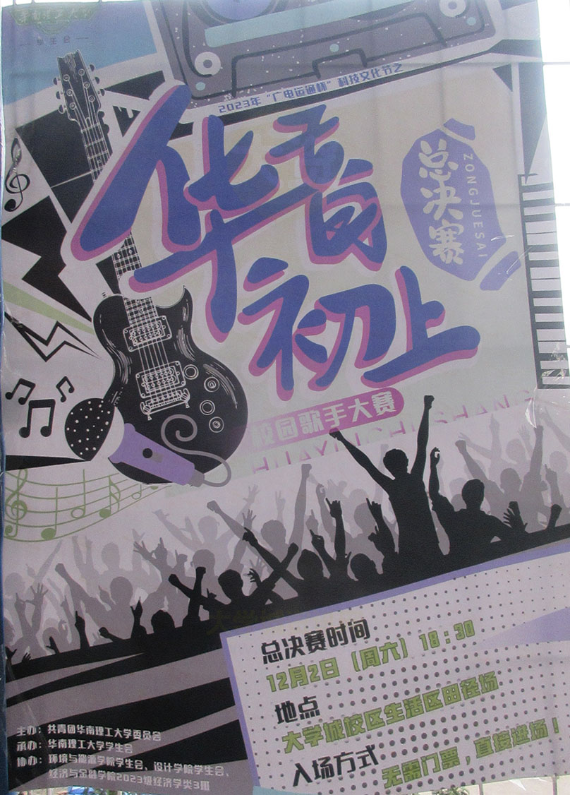 华工-2023年华音初上校园歌手大赛决赛预告 2023.12.02周六傍晚18点30开始 生活区田径场