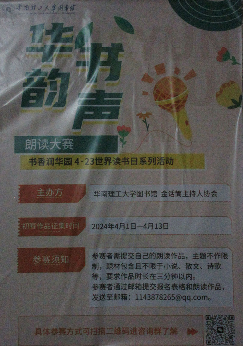华工-华韵书声·朗读大赛 初赛作品征集2024.04.01-04.13 具体参赛方式扫码进咨询群了解
