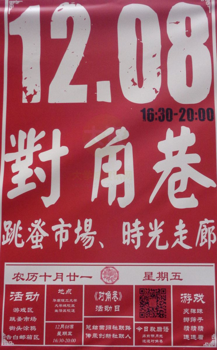 艺术街区十三区《对角巷》活动日 12月8日周五 16:30-20:00 生活区校道