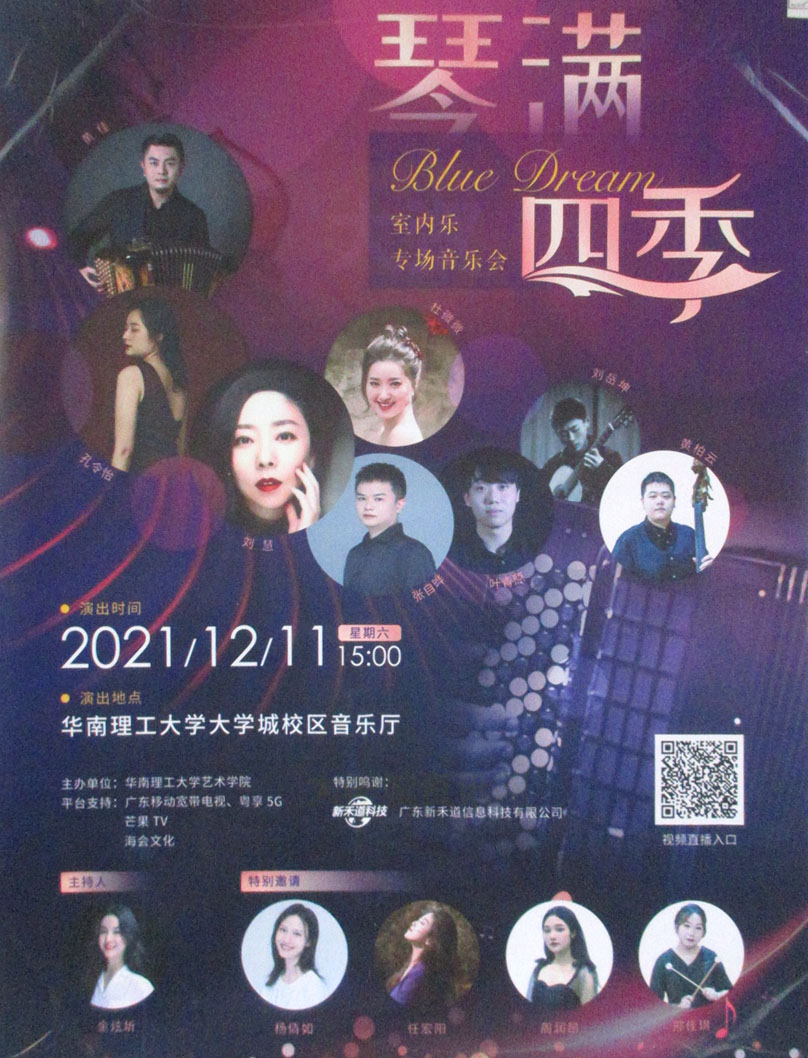 华工 活动预告 琴满四季 室内乐专场音乐会 2021.12.11周六下午15点开始 教学区音乐厅