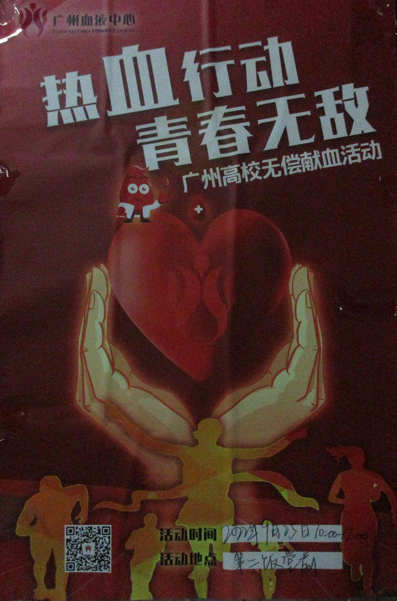 广州高校无偿献血活动 2022年9月25日10点-17点 大学城华工生活区二饭前空地