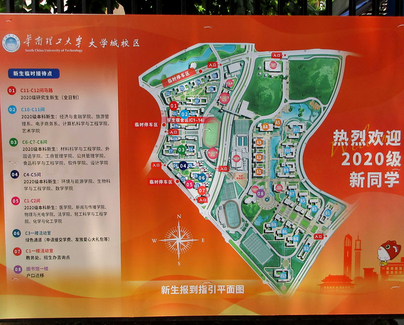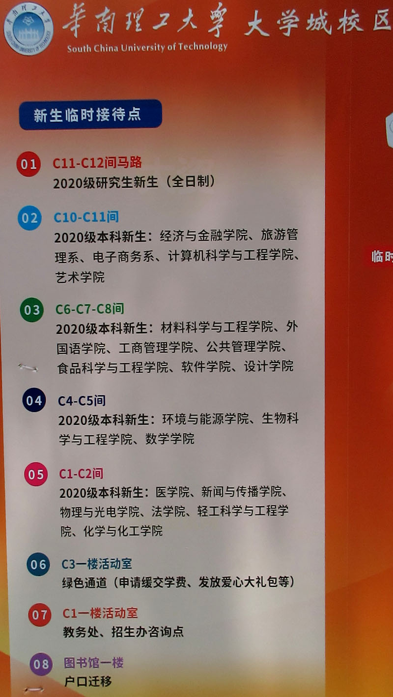 华工2020级新生报到-新生临时接待点、各学院从具体哪个门口进校园