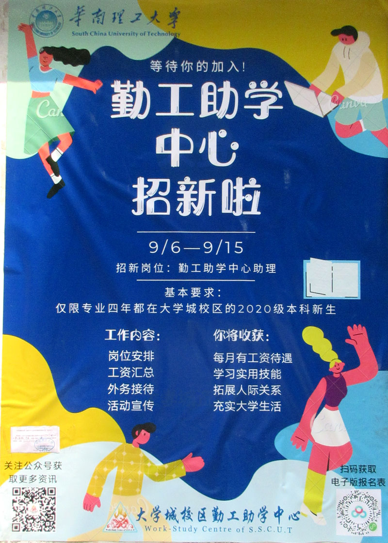 | 勤工助学中心招新啦 9.6-9.15 具体岗位中心助理 | ||||||