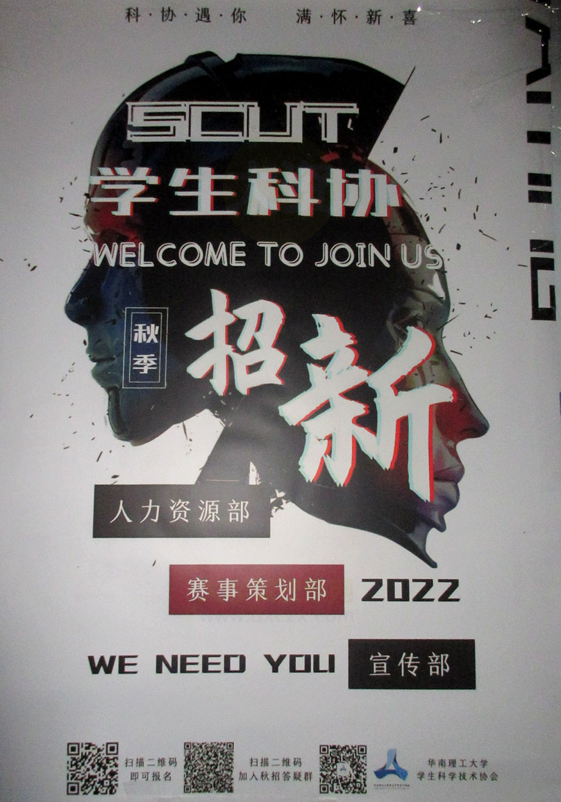 华工学生科协2022秋季招新 人力资源部,赛事策划部,宣传部 扫码即可报名,加入答疑群 |