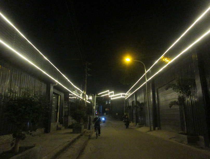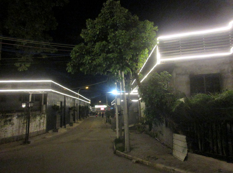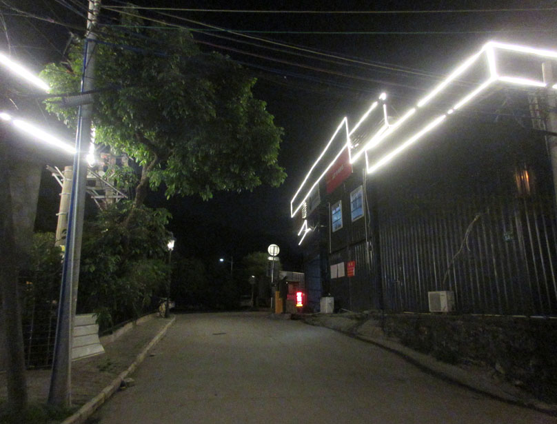 | 穗石村直街大街中西段棚户仓库房外加铁皮加固升级改造后 最近看到还增安装了晚上灯光缀饰 | ||||||