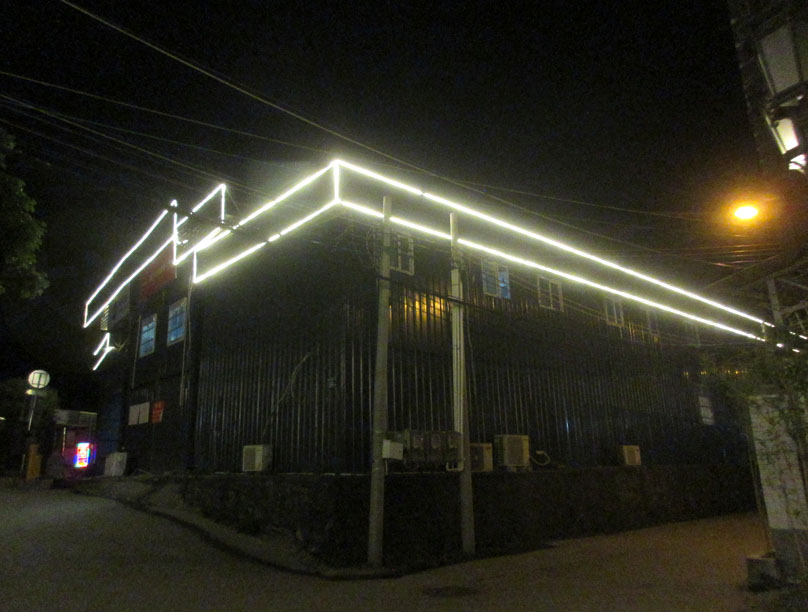 棚户仓库房升级改造后 晚上还增安装了灯饰装点 夜晚看起来也是格外醒目和亮眼