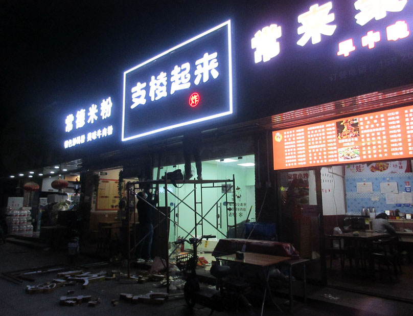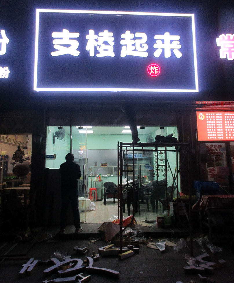 大利家超市西列南 原先的壹久小食坊店面好像正在改成叫支棱起来,看到有个炸字,是改做烧烤方面的吧