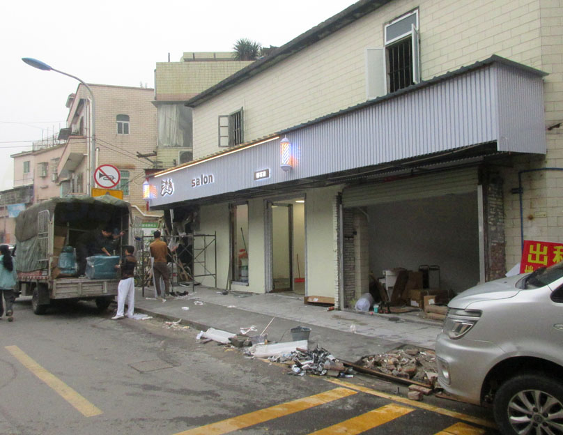 稍早前见到 穗石市场对面路边原华兴粮油所在装修的应该是一家发型&发廊&理发店 波朗-可能类似南亭村的欧莱雅美发 目前正在搬一些沙发座椅等以及进一步完成门面的装修