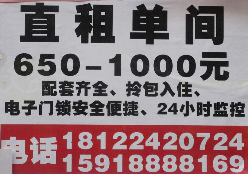 | 穗石村·直租单间 650-1000元 配套齐全、拎包入住、电子门锁安全便捷、24小时监控 电话18122420724 | ||||||