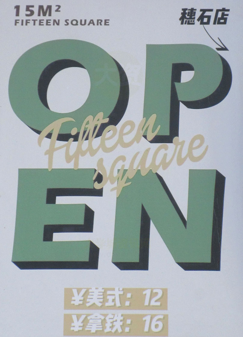 | 穗石大道东西向段&北段&中段 南列偏西 看到新开一家叫Fifteen Square 15㎡ 的咖啡店 美式12元 拿铁15元 | ||||||