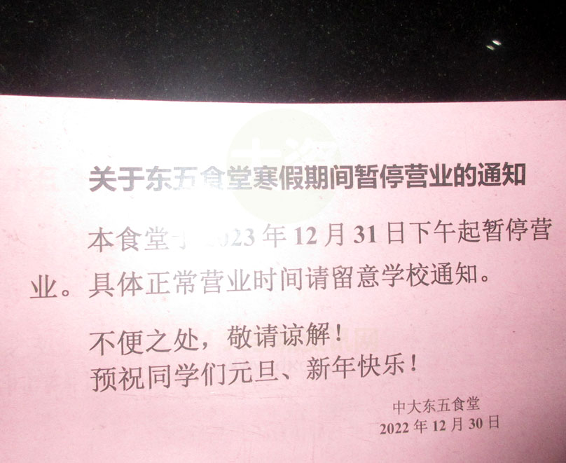 | 中大五饭元旦之后即开始寒假放假 据了解 一饭新年春节期间有正常供餐 | ||||||