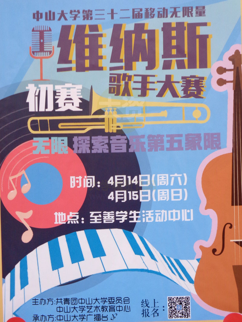 | 中山大学第三十二届移动无限量维纳斯歌手大赛初赛4月14/15日至善学活 | ||||||
