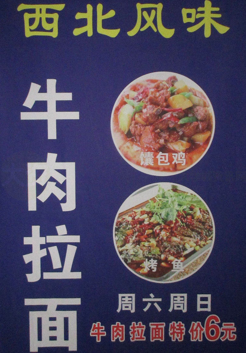 | 中大生活区四饭-西北风味 牛肉拉面周六日特价6元 近期推荐-馕包鸡、烤鱼、炒饼、酸辣粉等 | ||||||
