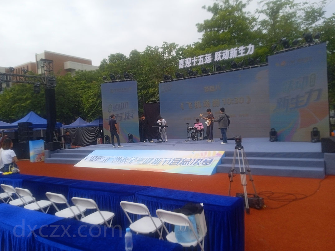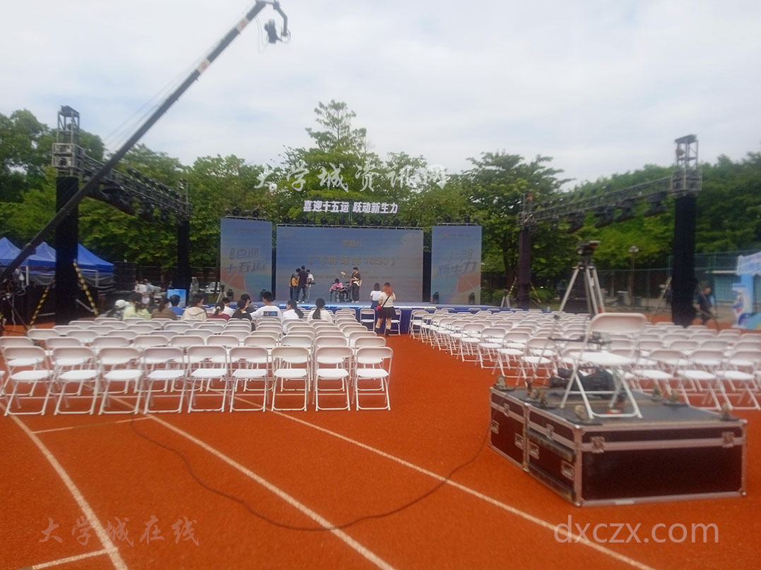 | 中山大学教学区西田径场东北角区-看到今傍晚将有一个2025广州大学生迎新节目总决赛进行 目前午后正在布场调试彩排中 | ||||||