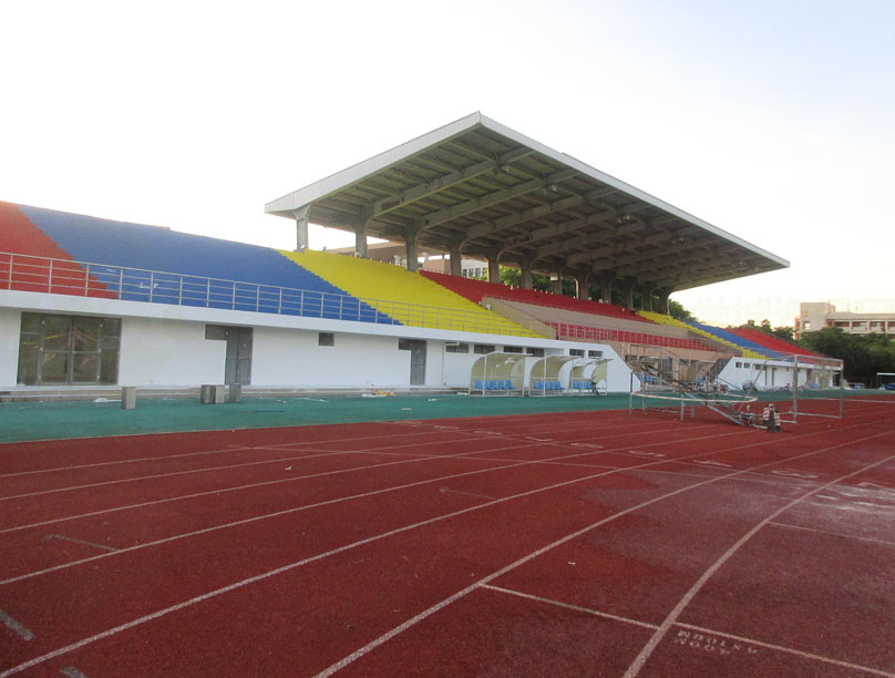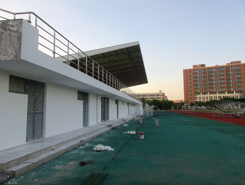 | 中大教学区东运动场看台翻新和草皮重种已经基本完工了喔,新种植的草皮看起来青绿细密,看台也变得崭新多彩了 | ||||||