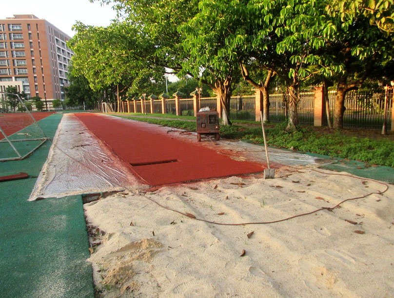 中大教学区东运动场看台翻新和草皮重种已经基本完工了喔,新种植的草皮看起来青绿细密,看台也变得崭新多彩了,要是主看台的顶棚也能翻新或重做一个更大更高的,这个运动场美化提升后的即视感就可算完美了,这个看台的顶棚一直感觉有些显小家子气,就是类似那种整体都很好就是头上戴的东西过于小巧的感觉,让这个主看台的场势难以充分呈显(展现)外化 另外注意到,主看台底下侧后的这条半室内百米跑道以及东侧边的跳远跑道都也是刚新铺筑的塑胶