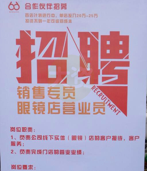 66明镜招聘销售专员、眼镜店营业员